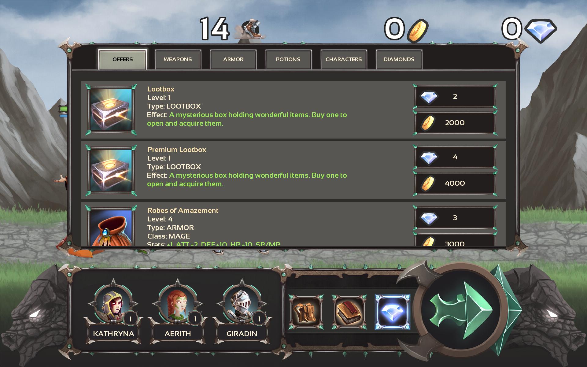 シングルバトルやトーナメントで他のプレイヤーと友達になります。ゲーム内の店で使うことができる金とダイヤモンドを獲得して、アイテム、ポーション、または新しいキャラクターのロックを解除します。